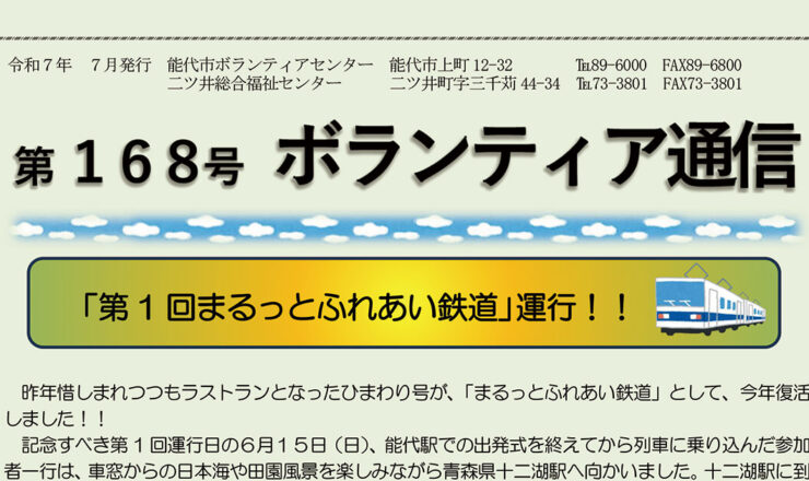 ボランティア通信 第168号(令和7年7月発行)を掲載しました。 ダウンロードはこちら