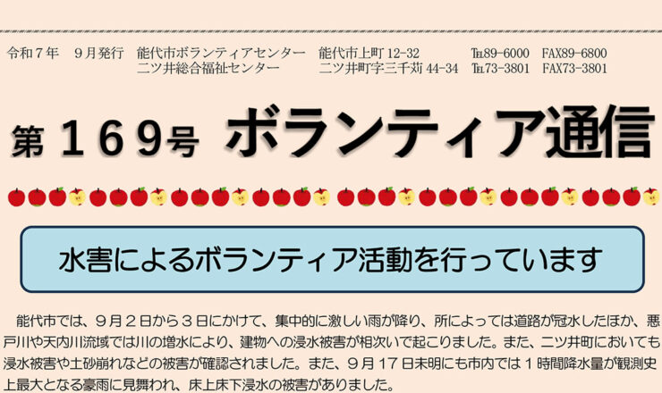 ボランティア通信 第169号(令和7年9月発行)を掲載しました。 ダウンロードはこちら