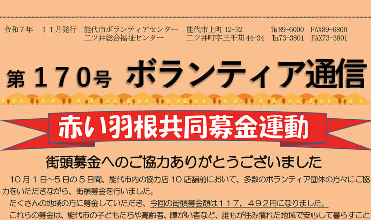 ボランティア通信 第170号(令和7年11月発行)を掲載しました。 ダウンロードはこちら