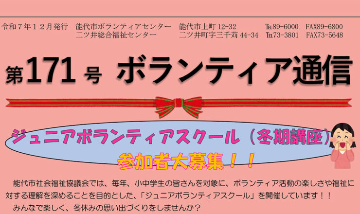 ボランティア通信 第171号(令和7年12月発行)を掲載しました。 ダウンロードはこちら
