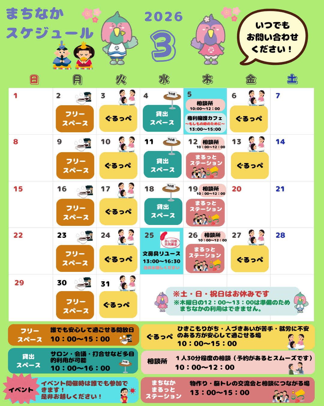 「まるっとステーションまちなか」3月のスケジュール