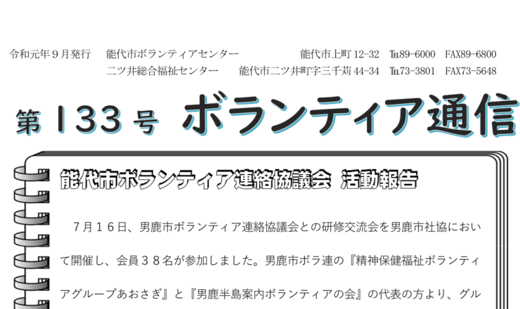 ボランティア通信 第133号(令和1年9月発行)を掲載しました。 ダウンロードはこちら