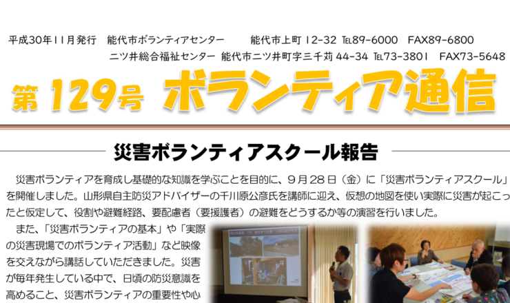 ボランティア通信 第129号(平成30年11月発行)を掲載しました。 ダウンロードはこちら