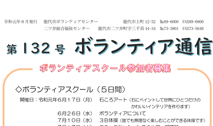 ボランティア通信 第132号(令和1年6月発行)を掲載しました。 ダウンロードはこちら
